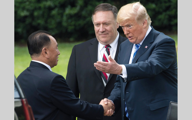 ترامب خلال استقباله مبعوثاً من كوريا الشمالية كيم يونغ تشول. أ.ف.ب