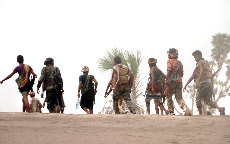 مقاتلون من قوات المقاومة المشتركة على مشارف مدينة الحديدة. إي.بي.إيه