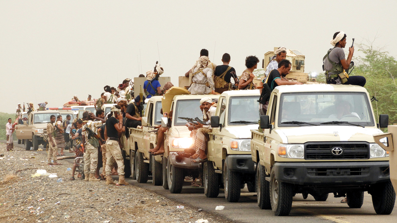 حشود من قوات الشرعية لقتال الميليشيات في الحديدة. إي.بي.أيه