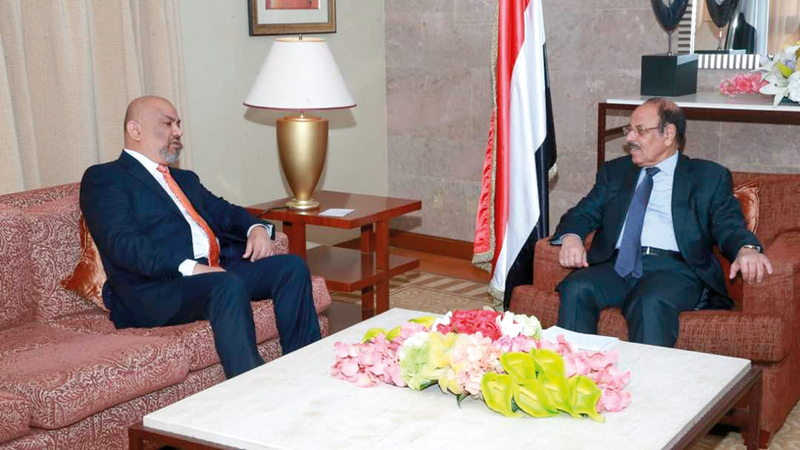أكد نائب الرئيس اليمني الفريق الركن علي محسن صالح الأحمر، أن المعركة التي يخوضها اليمنيون اليوم بدعم الأشقاء في التحالف «حرب دفاعية» ضد تهديد ميليشيات الحوثي الإيرانية لأمن اليمن والمنطقة. واطلع الأحمر خلال لقائه، أمس، وزير الخارجية خالد اليماني، على الجهود الدبلوماسية المبذولة من قبل قيادة الوزارة والبعثات الدبلوماسية اليمنية في إيصال صوت الشرعية والمواطن اليمني، وحشد الرؤى والتوجهات بما يخدم قضية اليمن واليمنيين.