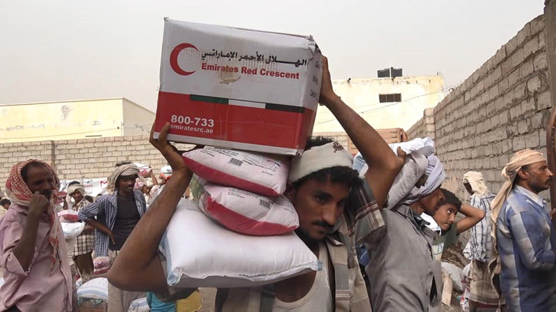 من ناحية أخرى، وزعت «هيئة الهلال الأحمر»، أول من أمس، 2000 سلة غذائية على الأهالي في منطقة العند التابعة لمديرية تبن بمحافظة لحج، لتواصل بذلك نهجها في مساعدة المواطنين اليمنيين لتجاوز الأزمات المعيشية والاقتصادية الصعبة، التي ألقت بكاهلها عليهم نتيجة ممارسات ميليشيا الحوثي.