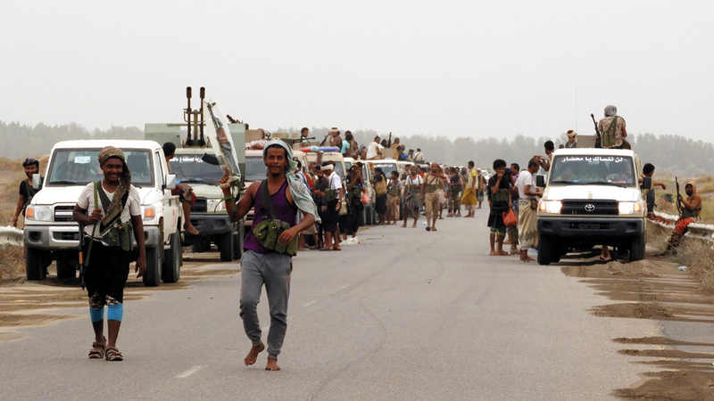 قوات ومركبات الجيش اليمني تتخذ موقعها لقتال الميليشيات الحوثية في مدينة الحديدة. إي.بي.إيه