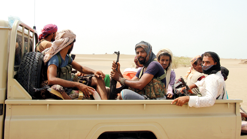 مقاتلون من القوات اليمنية المشاركة في العمليات العسكرية بالحديدة. إي.بي.إيه