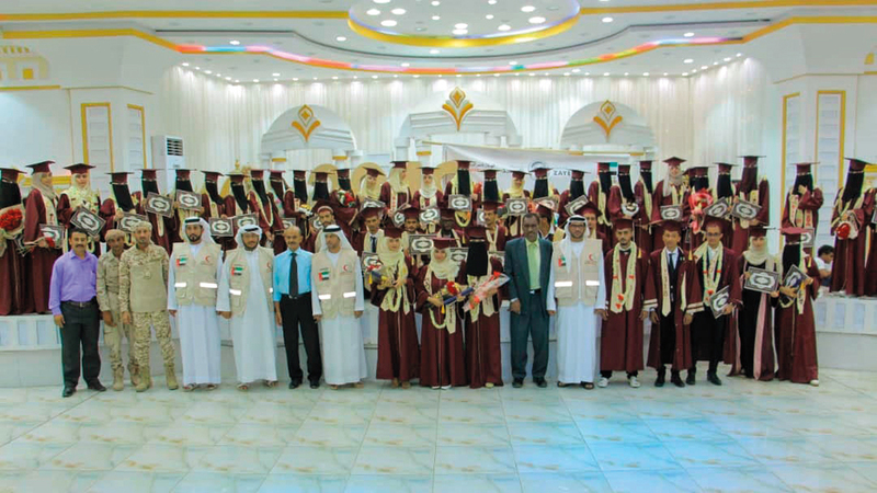 رعت هيئة الهلال الأحمر الإماراتي حفل تخريج طلاب قسم الترجمة في كلية اللغات بجامعة عدن، البالغ عددهم 60 طالباً وطالبة، الذي أقيم أمس بقاعة قصر العرب في مديرية المعلا.