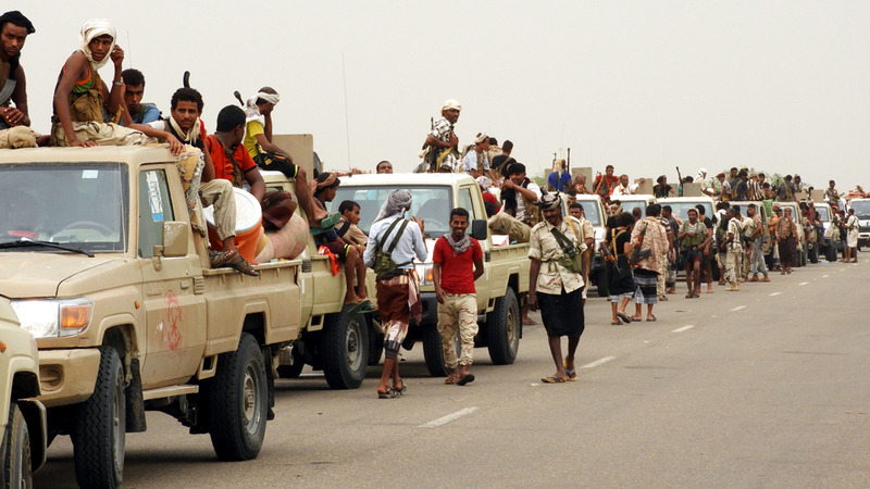 مقاتلون من قوات المقاومة اليمنية يتخذون مواقعهم خلال استعدادات لمعارك في الحديدة. أرشيفية