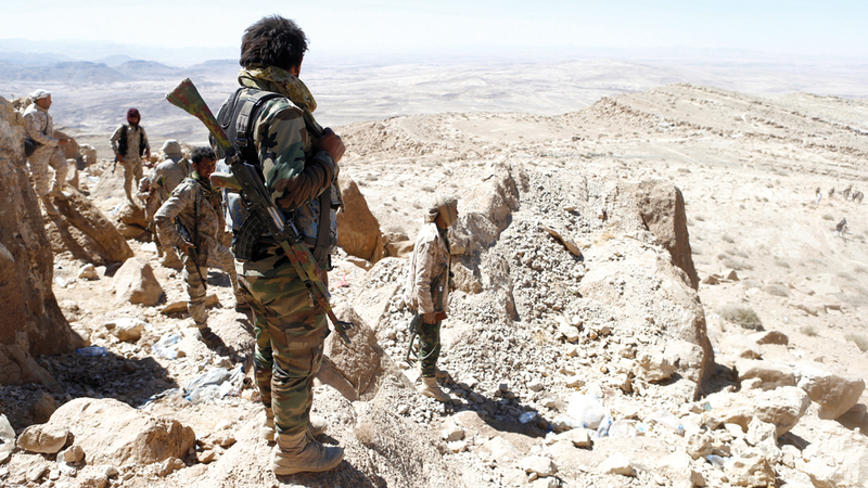 جنود من الجيش اليمني في إحدى المناطق على جبهة نهم القريبة من صنعاء. أرشيفية - رويترز
