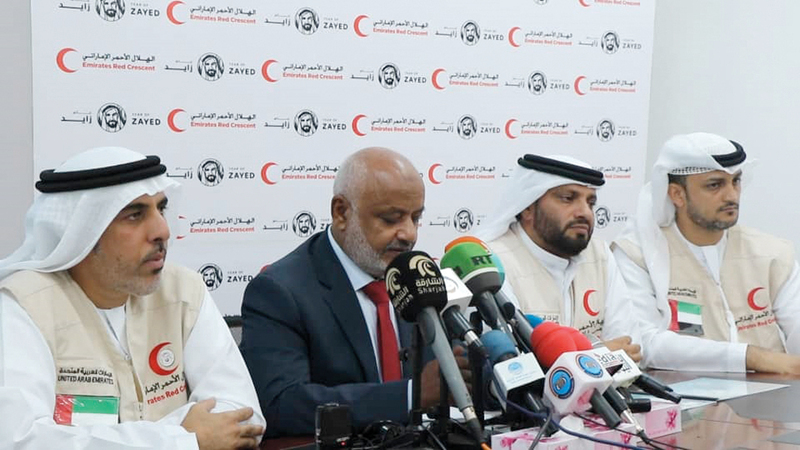 المؤتمر الصحافي لمحافظ الحديدة وهيئة الهلال الأحمر الإماراتي. وام
