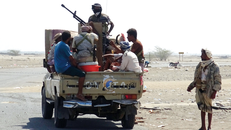 مقاتلون من المقاومة التهامية في مدينة الحديدة. أ.ف.ب