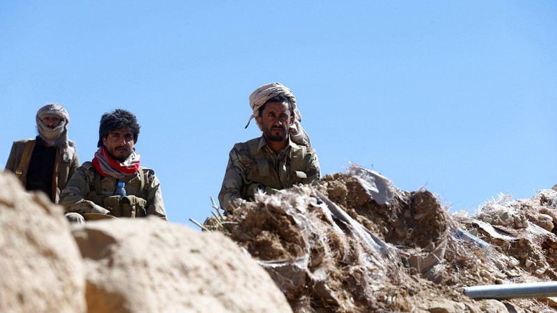 عناصر من الجيش اليمني في إحدى المناطق بجبهة نهم القريبة من صنعاء. رويترز