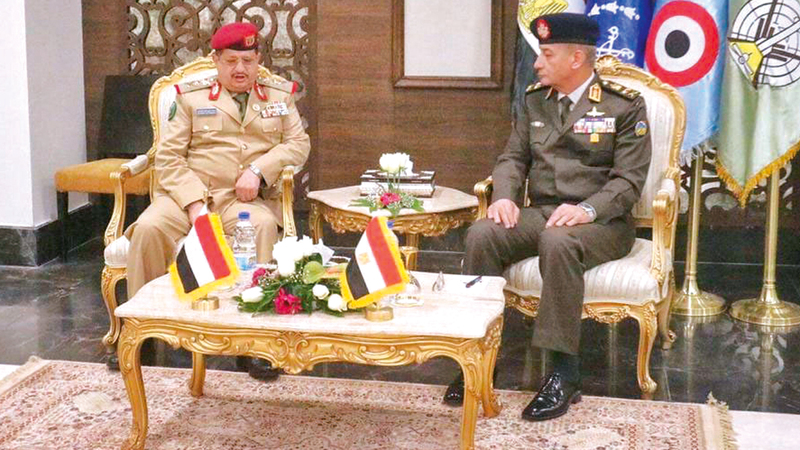 وزير الدفاع اليمني خلال لقائه نظيره المصري في القاهرة. سبأنت