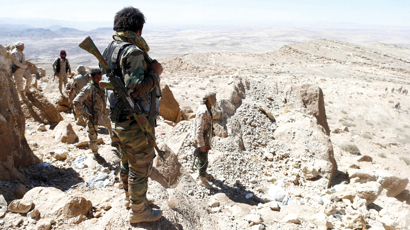 جنود من الجيش اليمني بأحد المواقع في نهم القريبة من صنعاء. رويترز