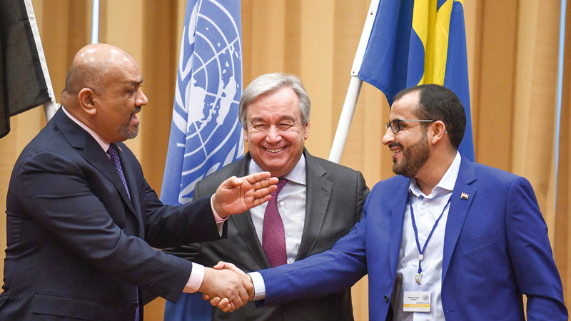 طغت مصافحة بين وزير الخارجية اليمني ورئيس الوفد الحكومي في مشاورات السويد بشأن اليمن وأحد أعضاء وفد الحوثي على أحداث الجلسة الختامية للمشاورات، أول من أمس، بحضور الأمين العام للأمم المتحدة أنطونيو غوتيريش، واستأثرت بنصيب واسع من الاهتمام والإشادة.