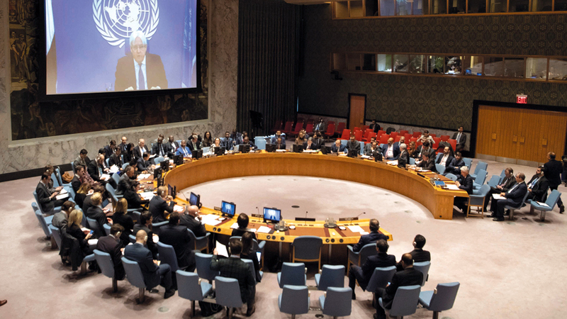 «غريفيث» خلال اجتماع مجلس الأمن الدولي حول اليمن. أسوشيتدبرس