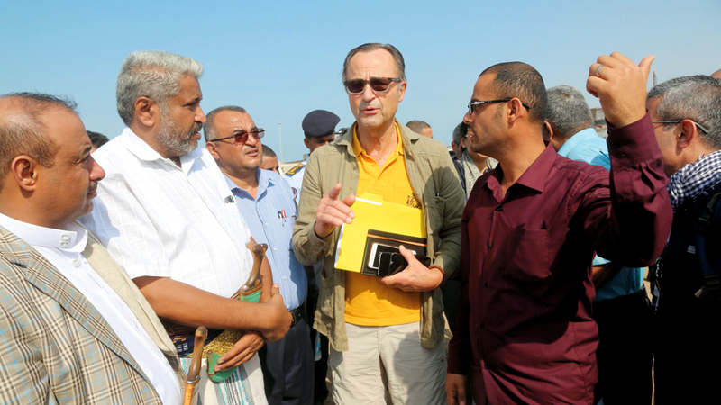الجنرال باتريك كاميرت لدى وصوله إلى ميناء الحديدة. أ.ف.ب