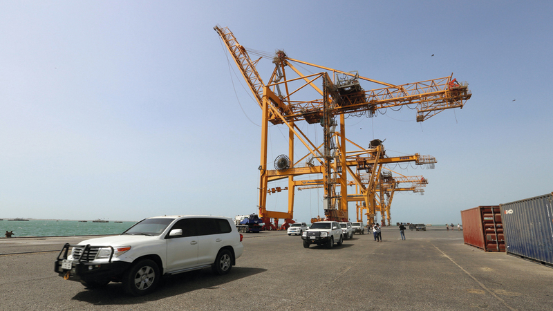 قافلة تابعة للأمم المتحدة أثناء زيارة ميناء الحديدة. أرشيفية