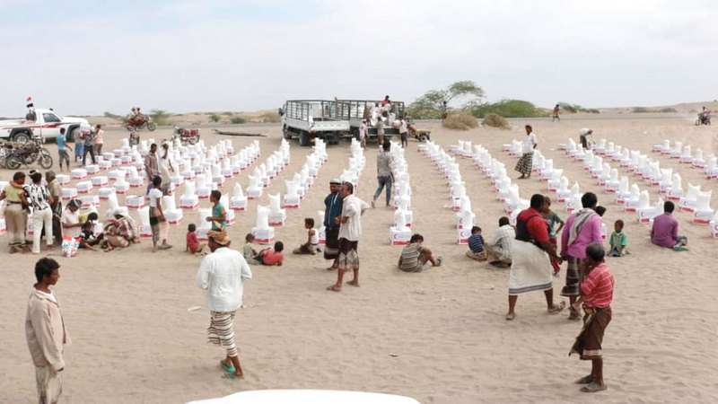 «الهلال» توزع 120 طناً من المساعدات في الحديدة