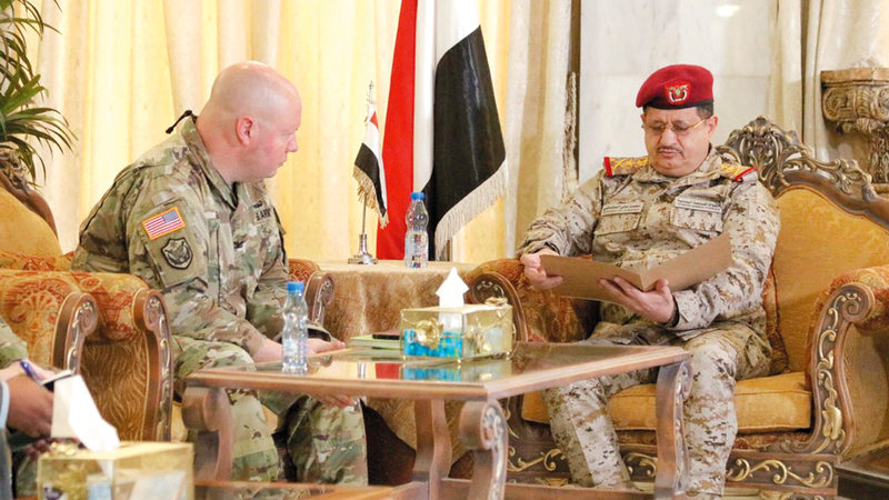 وزير الدفاع اليمني خلال استقباله الملحق العسكري الأميركي. سبأ نت