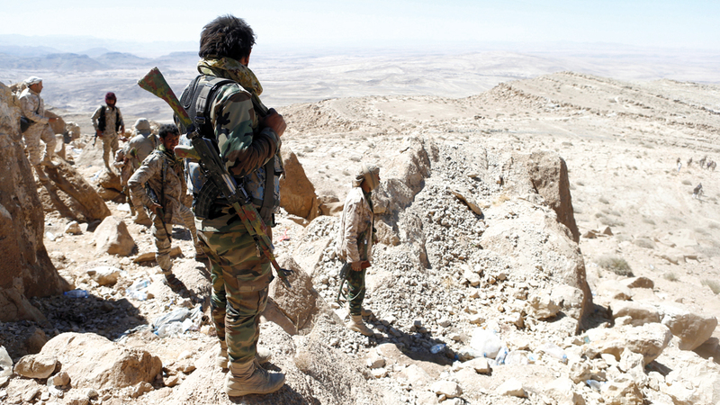 جنود يمنيون في أحد المواقع بجبهة نهم القريبة من صنعاء. رويترز