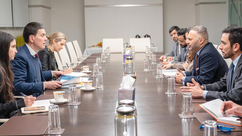 قرقاش خلال لقائه مع رئيس لجنة الإنقاذ الدولية. من المصدر