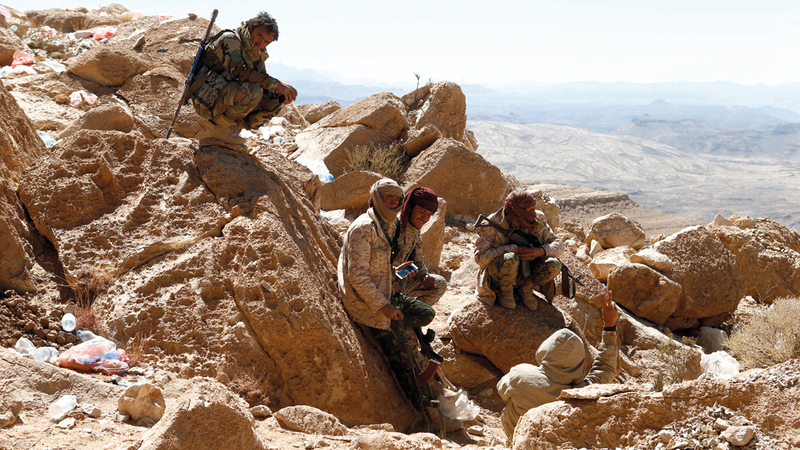 جنود من الجيش اليمني في أحد المواقع في جبهة نهم القريبة من صنعاء. رويترز