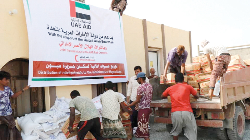 الإمارات تغيث سكان جزيرة ميون وتقدم مساعدات غذائية لمديرية تريم