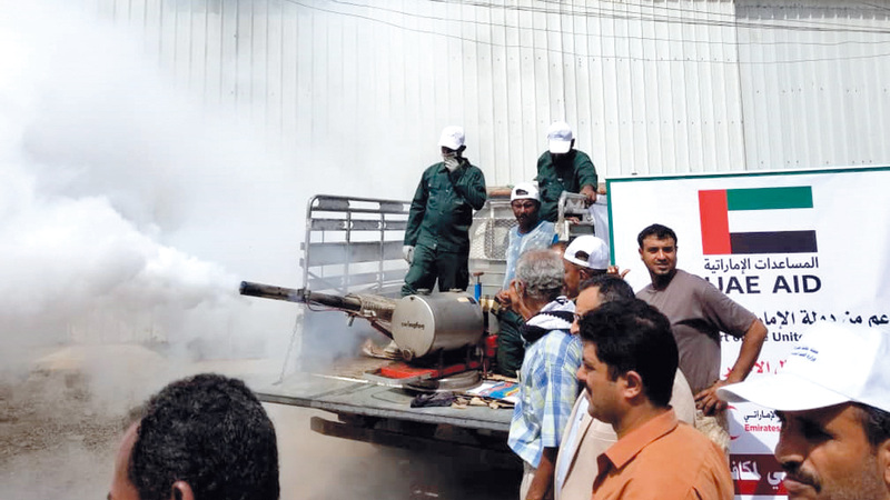 انطلقت، أول من أمس، في محافظة عدن، بتمويل من دولة الإمارات العربية المتحدة وتحت إشراف هيئة الهلال الأحمر الإماراتي، حملة الرش الضبابي لمكافحة حمى الضنك.