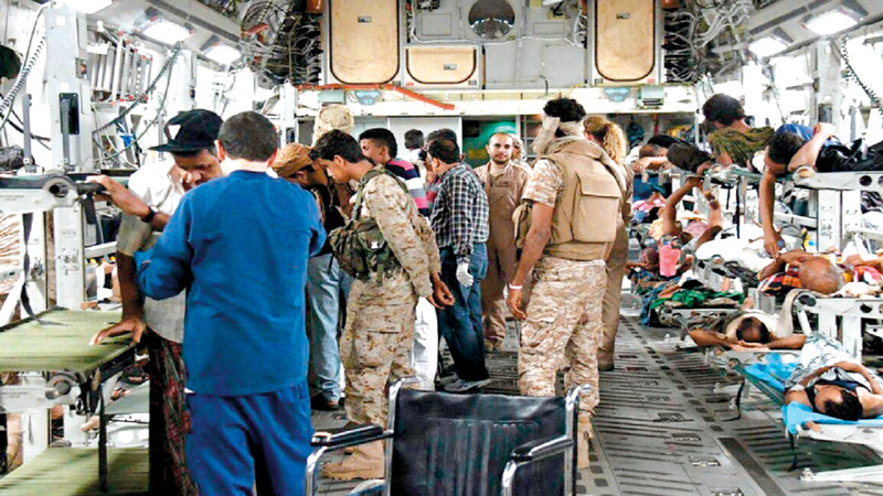 الجرحى اليمنيون ثمّنوا مواقف دولة الإمارات على هذه اللفتة الإنسانية. أرشيفية