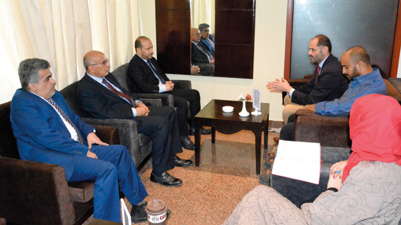 الوزيران اليمنيان خلال لقائهما مدير مكتب «أوتشا». سبأنت