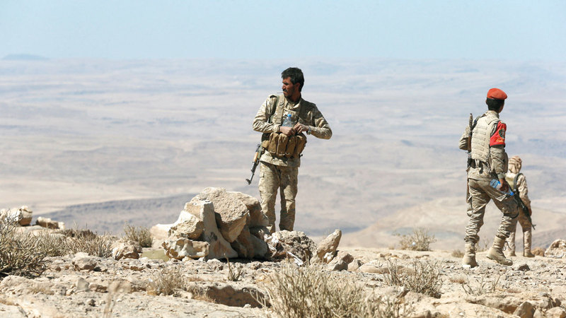 قوات يمنية في إحدى المناطق بجبهة نهم القريبة من صنعاء. رويترز