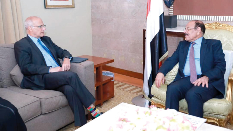 واستعرض نائب رئيس اليمني، خلال اللقاء، عدداً من الانتهاكات التي يمارسها الحوثيون من قتل واختطاف وترهيب وتجويع لليمنيين، داعياً المجتمع الدولي إلى المزيد من الضغط لتنفيذ القرارات الدولية.