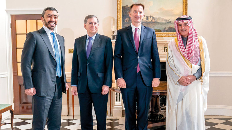 وفي ختام الاجتماع، أصدر وزراء خارجية المملكة المتحدة والإمارات العربية المتحدة ووزير الدولة للشؤون الخارجية في المملكة العربية السعودية والقائم بأعمال وزير الخارجية الأميركي لشؤون الشرق الأدنى، بياناً مشتركاً، أكدت فيه دول الرباعية التزامها بحل سياسي شامل للنزاع في اليمن، وتأييدها للاتفاقيات التي توصلت إليها الأطراف اليمنية في استوكهولم في ديسمبر 2018.