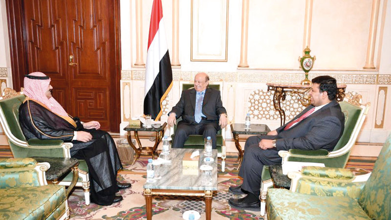 هادي خلال استقباله السفير السعودي لدى اليمن. سبأنت