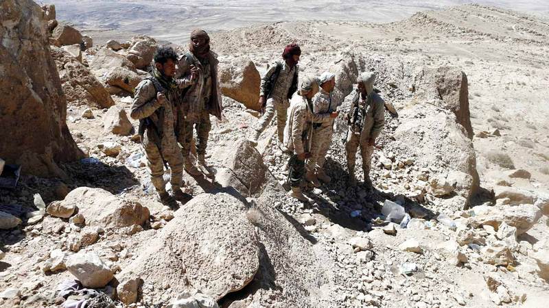 جنود يمنيون في أحد المواقع بجبهة نهم القريبة من صنعاء. رويترز