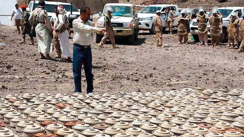 وتشير الإحصاءات إلى أن الميليشيات الحوثية زرعت أكثر من مليون لغم في مختلف المحافظات اليمنية، منها ألغام مضادة للأفراد، وأخرى مضادة للعربات وللدبابات وللسفن والمراكب البحرية، وتسببت في سقوط مئات الشهداء وآلاف المصابين من المدنيين، بينهم نساء وأطفال، وتكمن المشكلة والخطورة الكبرى في أن الميليشيات تقوم بتصنيع ألغام على شكل صخور ملونة وأسطوانية، وألعاب أطفال ومواد بناء، ومجسمات متنوعة، بهدف إسقاط أكبر عدد من الضحايا.