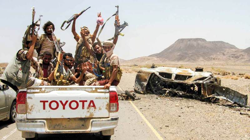 مجموعة من القوات اليمنية في إحدى المناطق بالقرب من معسكر خالد بالمخاء. أ.ف.ب