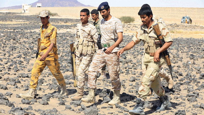 جنود من الشرعية اليمنية في إحدى المناطق بمأرب. رويترز