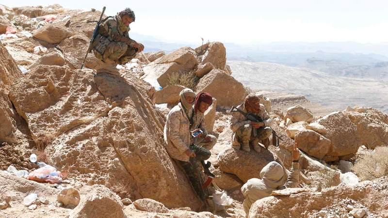 جنود يمنيون في أحد المواقع على جبهة نهم القريبة من صنعاء. رويترز