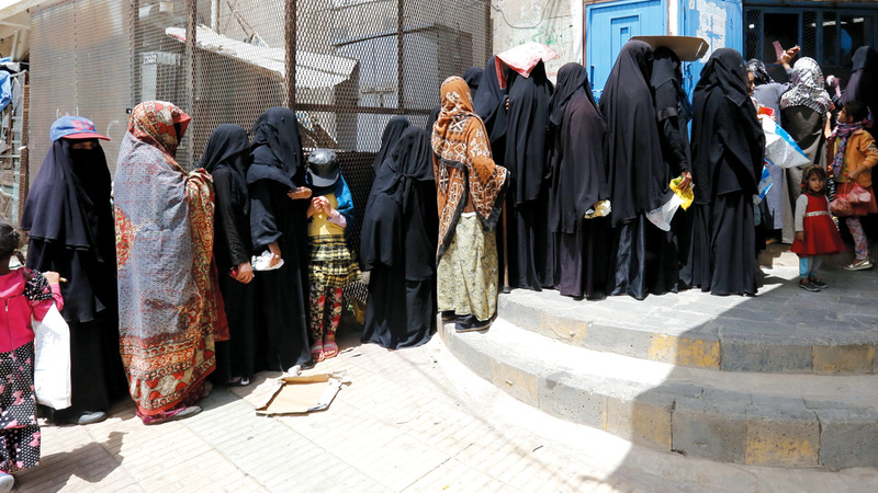 يمنيات بانتظار الحصول على المساعدات في صنعاء. أرشيفية