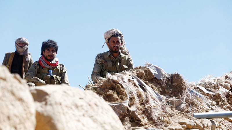 قوات يمنية في أحد المواقع بجبهة نهم القريبة من صنعاء. رويترز