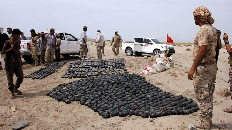 الجيش اليمني يستعد لتفجير ألغام حوثية. أرشيفية