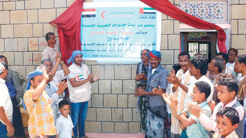 هيئة «الهلال» تفتتح مدرسة قتيبة بن مسلم في مديرية الوازعية محافظة تعز. وام