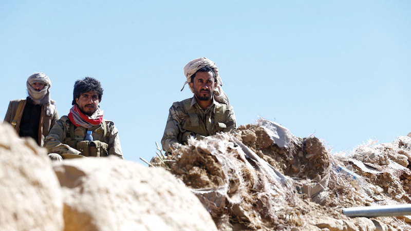 جنود من الشرعية اليمنية في أحد المواقع على جبهة نهم القريبة من صنعاء. رويترز