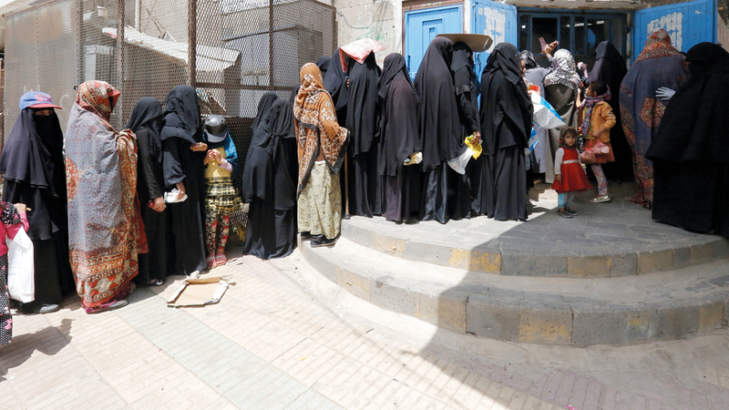 نساء يمنيات يصطففن للحصول على مساعدات. أرشيفية