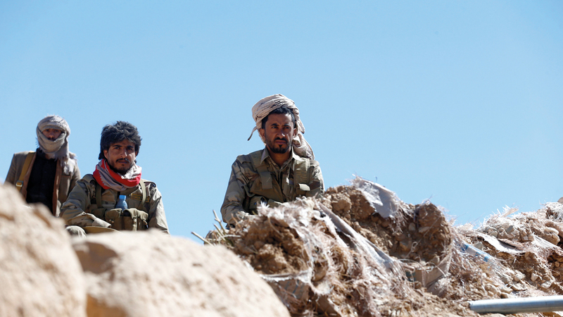 جنود من الشرعية اليمنية في أحد المواقع بجبهة نهم القريبة من صنعاء. رويترز
