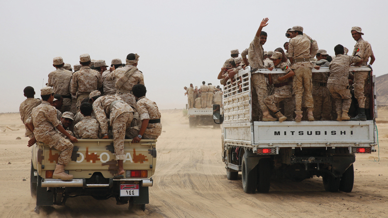 قوات من الشرعية اليمنية في إحدى المناطق بمحافظة مأرب. رويترز