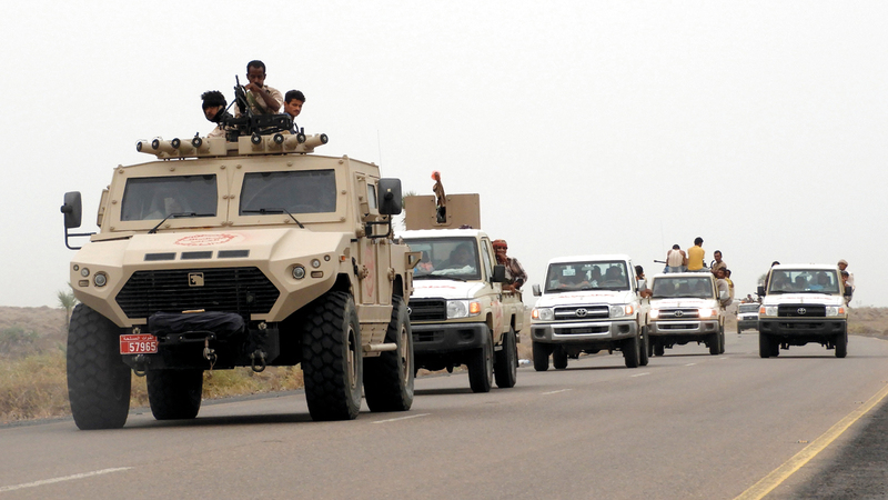 رتل من سيارات قوات الشرعية اليمنية في إحدى المناطق شرق الحديدة. ■ أ.ف.ب