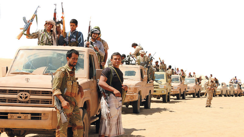 رتل من سيارات قوات الشرعية اليمنية في إحدى مناطق شبوة. أرشيفية