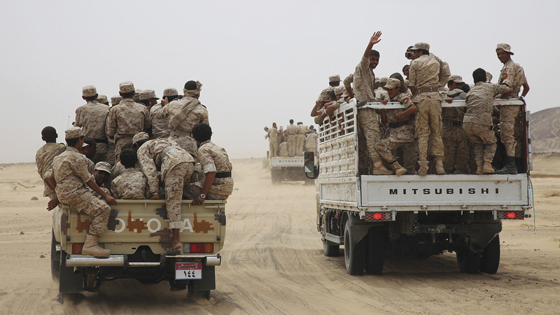 قوات من الشرعية اليمنية في إحدى المناطق بمأرب. رويترز