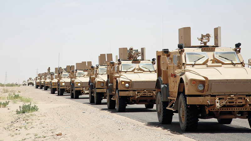 رتل من الآليات العسكرية لقوات الشرعية اليمنية في إحدى مناطق مأرب. إي.بي.إيه