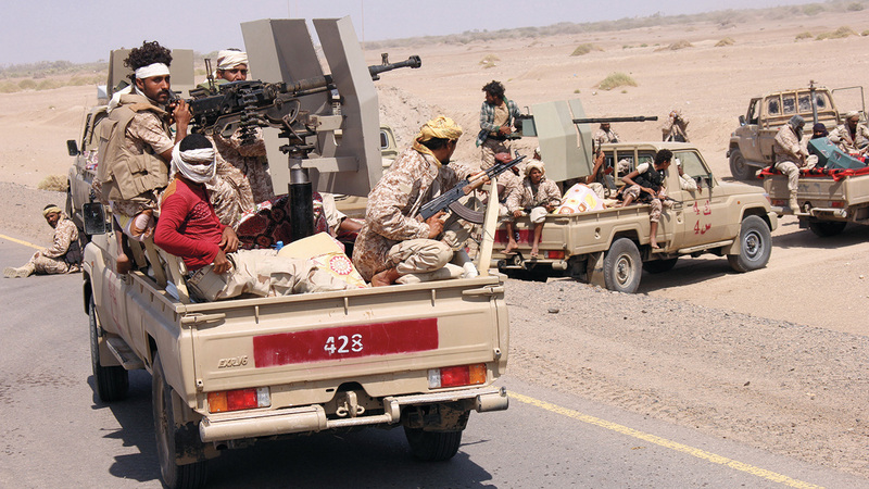 قوات من الشرعية اليمنية في إحدى مناطق المخاء. رويترز
